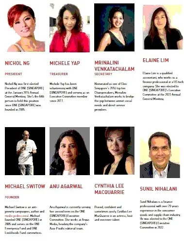 The 2023 Executive Committee and Officers were elected at an Annual General Meeting on 25 February 2023. ONE (SINGAPORE) is primarily run by volunteers.